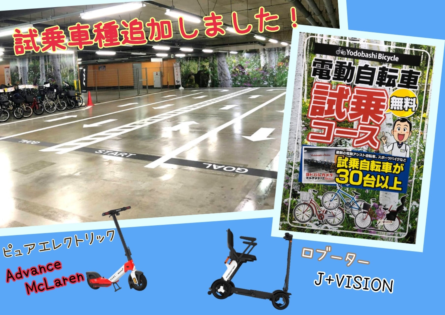 マルチメディアAkiba 6階 自転車専門コーナーでは、子ども乗せ電動アシスト自転車や、通勤・通学向けの電動アシスト自転車を多数ご用意しております。