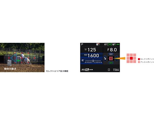 ライブビュー撮影を快適にする、スムーズな画面表示(60fps)。モニター上で素早い被写体をしっかりとらえることができます。またフォーカスアシスト機能で、マニュアルフォーカスでのピント合わせが楽におこなえます。