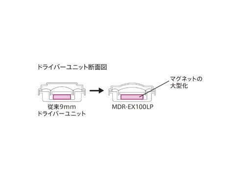 従来の9mmドライバーユニットと比べて総磁束を50%アップすることで、高感度・高音質化を実現しました。さらに、音の解像度を高め、クリアな中高音と重厚でパワフルな低音を再生する400kJ/m3高磁力ネオジウムマグネットを搭載。カラフルでコンパクトなボディから、バランスに優れた高音質サウンドを再生します。