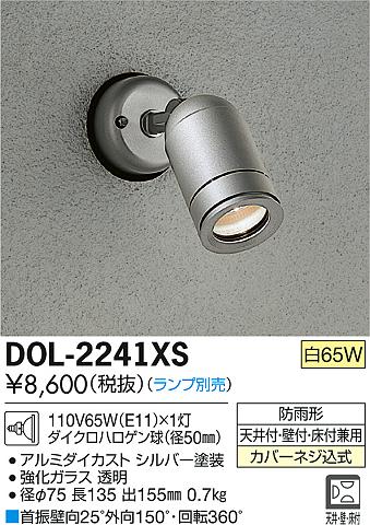 DAIKO ダイコー 大光電機 白熱灯スポットライト ランプ別売 DOL-2241XS の商品スペック