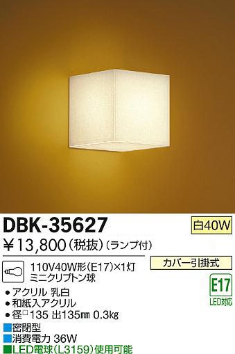 DAIKO ダイコー 大光電機 白熱灯ブラケット 40W形 DBK-35627 の商品スペック