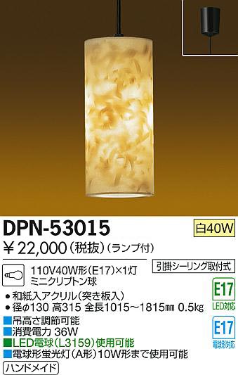 DAIKO ダイコー 大光電機 白熱灯ペンダント 40W形 E17 DPN-53015 の商品スペック