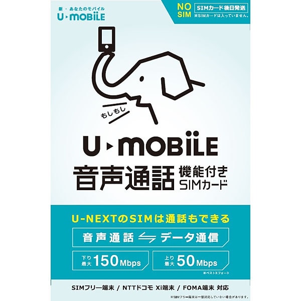 • U-NEXT ユーネクスト 音声通話機能付きSIMカード U-mobile通話プラスパッケージ(SIMなし)