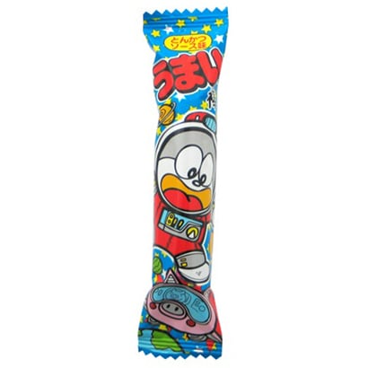 駄菓子の定番人気シリーズ。棒形タイプのサクサクスナックです。とんかつソース味。