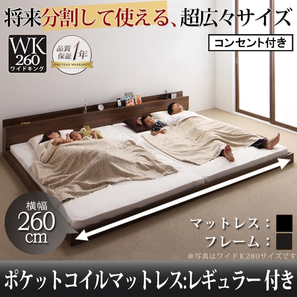 コスパクリエーション 将来分割して使える 大型モダンフロアベッド LAUTUS(ラトゥース) ポケットコイルマットレス:レギュラー付き ワイドK260 フレーム:ブラック/マットレス:ブラック YS-53676 の 商品概要