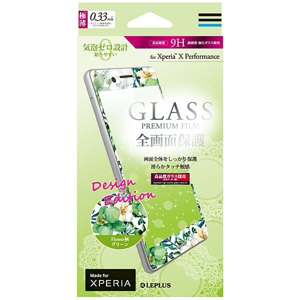 LP-XPXPFGFFGR [Xperia X Performance GLASS PREMIUM FILM 全画面保護 デザイン Flower 0.33mm グリーン]