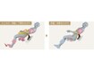 座面エアーバッグを膨らませて身体を持ち上げ、モミ玉で腰を押し上げます。