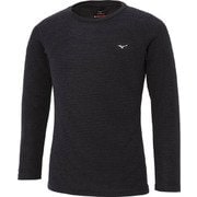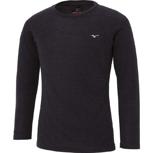• ミズノ mizuno ブレスサーモ メリノウール ボーダー クルーネックシャツ 長袖 メンズ Mサイズ ネイビー [A2...