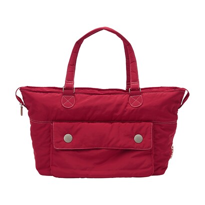 ラウンド中もラウンド後もおしゃれにこだわる女性ゴルファーに最適な、たっぷり収納できるトートタイプのバッグです。両端のホックをはずせば、開口が広がり出し入れも楽々。内側にもポケットがあるので、小物の収納もしやすくなっています。
