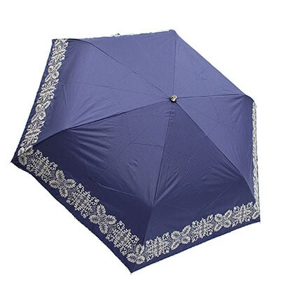 • スギタ 折りたたみ傘 晴雨兼用 C/C ハワイアンキルト柄刺繍 ネイビー 50cm 楽折りミニ 27551NV