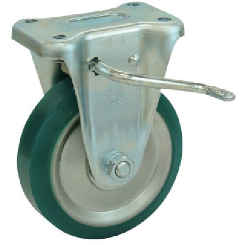 シシク スタンダードプレスキャスター 固定左ストッパー付 150径 ウレタン車輪 UWKB-150(L)