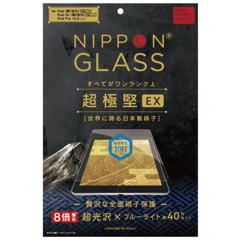 NIPPON GLASS iPad 10.2インチ 2021年モデル/2020年モデル/2019年モデル/iPad Air(第3世代)/iPad Pro 10.5インチ NIPPON GLASS ブルーライト低減 液晶保護強化ガラス TY-IPD1910-GL-DXBCCC の 商品概要