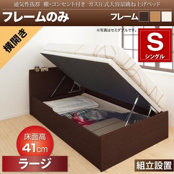 コスパクリエーション 組立設置付 通気性抜群 棚コンセント付 跳ね上げベッド Prostor ベッドフレームのみ 横開き 対応寝具幅:シングル 対応寝具奥行:レギュラー丈 深さ:ラージ フレームカラー:ナチュラル YS-112882 の 商品概要