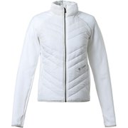 通気性の高いPertex(R) Quantumと軽量でストレッチ性に優れた嵩高のストレッチフリース(カルイシ(R))を使用したハイブリッドミドラージャケット。ARROWSをイメージしたキルトステッチと曲線切替の女性らしいシルエット。脇にストレッチフリースを配置することでより体に綺麗にフィットする。フロントにオリジナルアイコン入り金属引き手を使用。身頃裏には上品で控えめな光沢のシャンブレー裏地を使用。