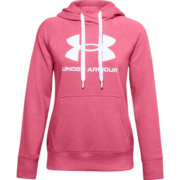 UAライバルフリース ロゴフーディー UA Rival Fleece Logo Hoodie 1356318 668_Pink Lemonade/White/White LGサイズ [フィットネス ジャケット レディース]