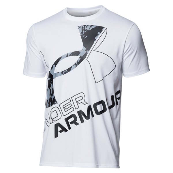 UA TECH WORD MARK SEASONAL UAテック ワード マーク シーズナル 1364328 100_WHT/BLK XLサイズ [フィットネス シャツ メンズ]