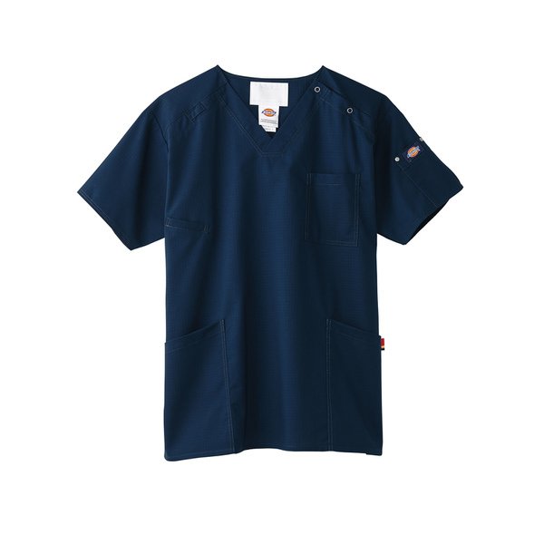 表面感のあるリップストップやダブルステッチがカジュアルなユニセックススクラブ。軍服などで見られるリップストップ織りを採用、格子状の織りは生地が裂けても途中で止まります。ラフに着こなせるスクラブで、動きやすいストレッチ性も持ち合わせた生地は吸湿速乾もあります。右肩ににPHSストラップを結べるループが付いていて、首にストラップをかけずに衛生的。ディッキーズらしい洗いざらしのような独特の風合いも魅力。左腕にあるポケットにはリベットでアクセント、他にはない遊び心がある男女兼用のディッキーズスクラブです。