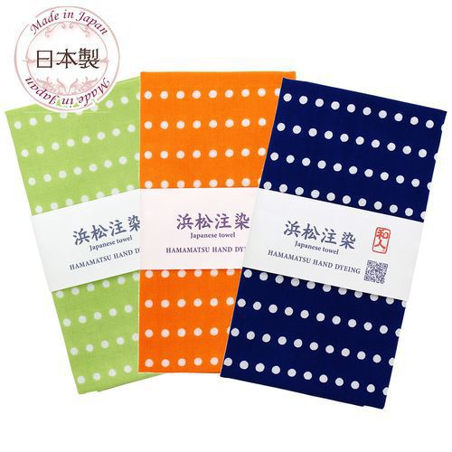 てぬぐい 3枚セット 豆絞り ドット 両面同柄 伝統技法 浜松注染(切りっぱなし) 日本製 綿100% 156-3S-06