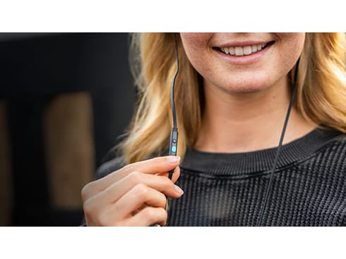 イヤーチップはシリコン製で、S・M・Lの3種類の大きさから左右の耳それぞれにあったものを選べます。耳に優しくフィットするので、長時間快適に使用できます。(出荷時はMサイズが装着されています。)