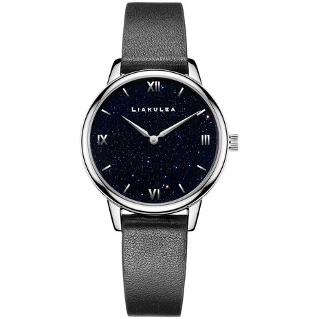 “幸せな時間をお届けしたい”というデザイナーからの願いから作られました。文字盤には天然石(ブルーアベンチュリン)が散りばめられており、一つ一つが完全オリジナルとなっています。まるでハワイのマウナケアの星空の様な幻想的な文字盤は忙しない毎日の中で背中を押してくれることでしょう。シンプルなインデックスを起用し、オフィスシーンでも使えます。
