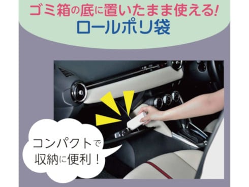 ゴミ箱の中底に置いたまま使えるロールタイプの手付きゴミ袋。サイズ:約縦48cm×横38cm。