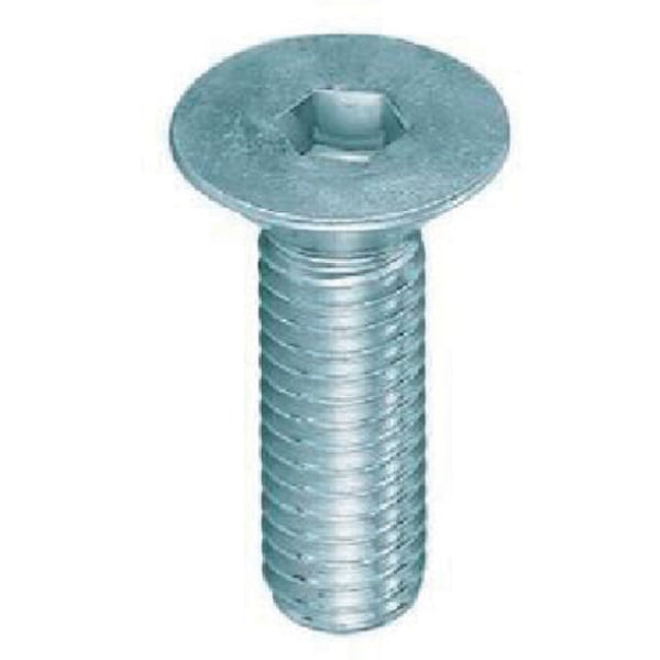皿型形状の頭部で六角穴付きですので、小ねじより強く締付けることができます。六角穴は、六角穴付ボルトより一回り小さくなっています。合金鋼に熱処理を施し強度を高くしてあります。耐食性向上のため、三価クロメートめっき(薄青っぽい色)がしてあります。