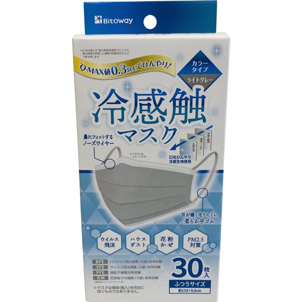 ビトウコーポレーション 冷感触マスク カラータイプ ふつうサイズ ライトグレー 30枚入 の 商品概要