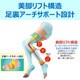 足首から上へいくほど圧力が低くなる設計で脚を軽やかに、スッキリと美しく整えます。(足首21hPa・ふくらはぎ16hPa・太もも10hPa)
