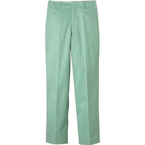 異物混入対策仕様のスタンダードの常温作業場向けストレートパンツです。前開き金属ファスナー、両脇スラッシュ、右後片玉縁ポケットです。インナー裾口ゴム入りです。