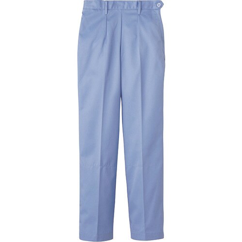 異物混入対策仕様のスタンダードの常温作業場向けストレートパンツです。ウエスト後ゴム、左脇開き金属ファスナー、右後外ポケット、インナー裾口ゴム入りです。