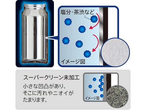 ボトルの内面には、なめらかで光沢のあるスーパークリーン加工を施しました。