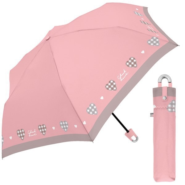 53.5cm カラビナ折傘 CHECKHEART PK 106450
