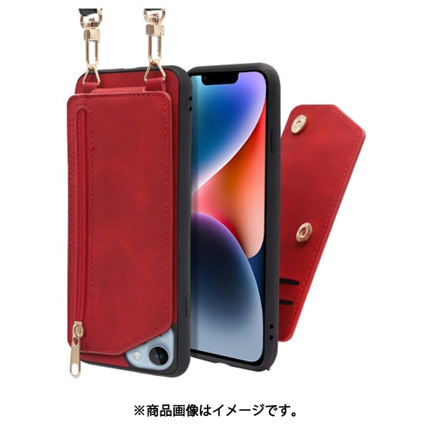 WORK54IP-RD-IP14 [LOOF SHOULDER-FLIP iPhone 14 用 背面型スマホショルダーケース ロングストラップ&カードポケット付き ロイヤルレッド]