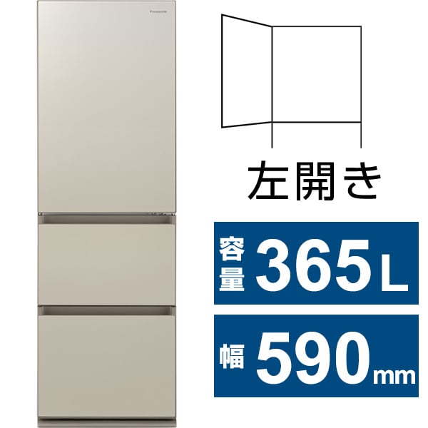パナソニック Panasonic 冷蔵庫 GCタイプ(365L・幅59cm・左開き・3ドア・サテンゴールド) NR-C374GCL-N の 商品概要