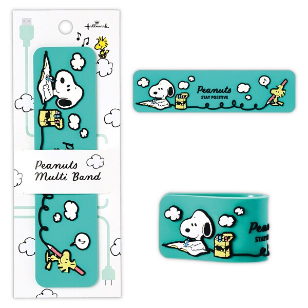 「Stay Positive」をテーマに仲間と一緒に日々を楽しむスヌーピーを描いた、前向きなムード溢れるステーショナリーコレクション。ごちゃごちゃしがちなコード類をすっきりコンパクトにまとめられるマルチバンドです。PCケーブルなど太いコードにも使いやすいようホールド部分を長くしました。