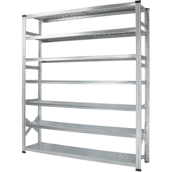 亜鉛メッキ加工された頑丈なスチール製に独特のリブ構造が採用されており、1段あたりの耐荷重は100kgとなります。重量のある物も確実に支え、安全に収納することができます。1つ1つのパーツが軽量な為、女性でも簡単に組立ができます。