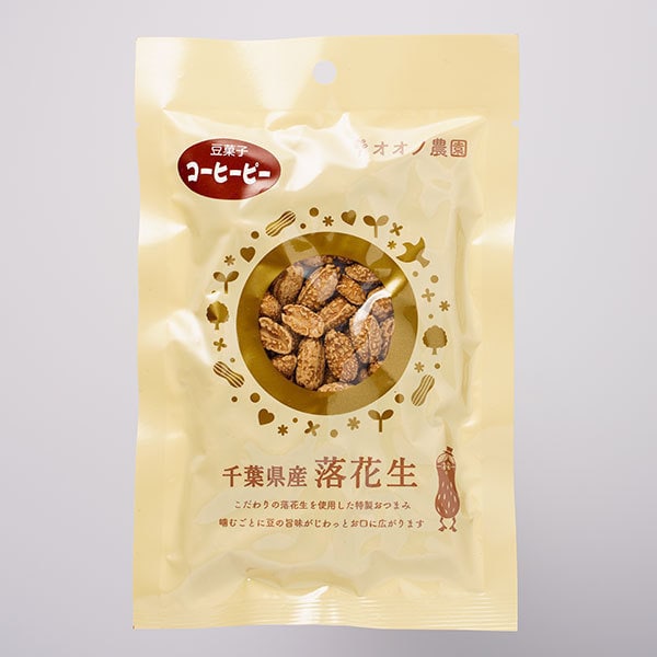 千葉県香取市のオオノ農園社農場の落花生だけを使って製造しています。コーヒーピーナツはピーナツをコーヒー風味に味付けました、味は甘すぎず少しビターな味わいが人気です。
