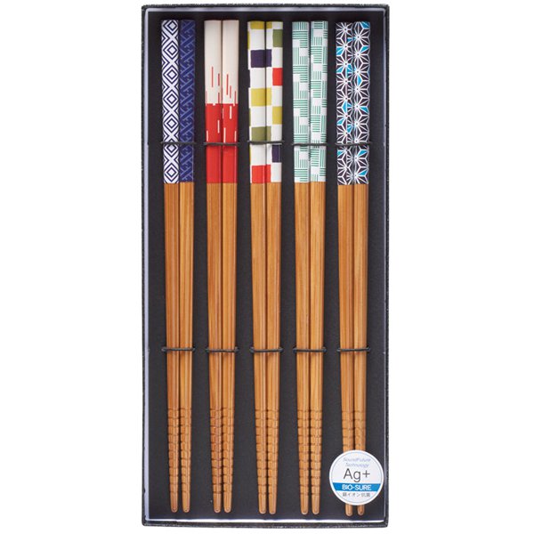 イシダ 5膳セット 抗菌 スス竹 浴衣アソビ 黒貼箱入 61042 の 商品概要
