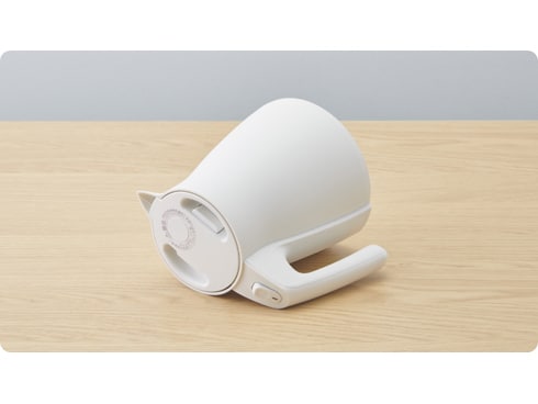 蒸気をとっ手部分で素早く検知することができるため、余計な蒸気が発生する前に電源がオフ。蒸気の量が少ない※ので、やけどのリスクを減らし、置き場所にも困らないので、安心してお使いいただけます。