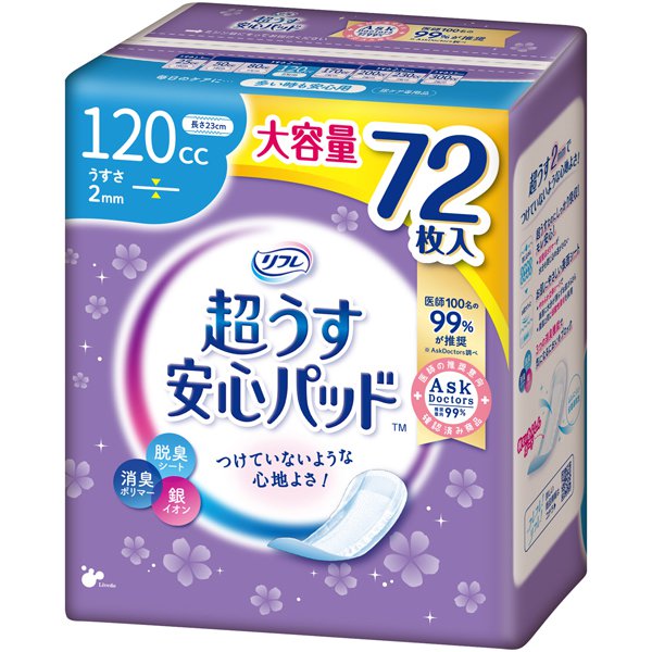 リフレ 超うす安心パッド 多い時も安心用 大容量パック 120cc 72枚入