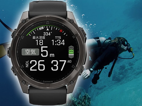 また、新たにダイビング機能が追加されスキューバダイビングやフリーダイビング(アプネア)の40mまでの潜水をサポート。