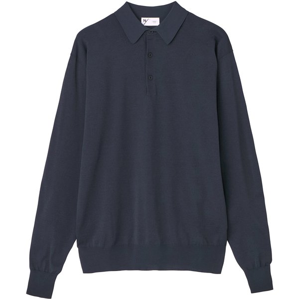 コットンライクなポリエステルを使用したハイゲージニットのロングスリーブポロ。