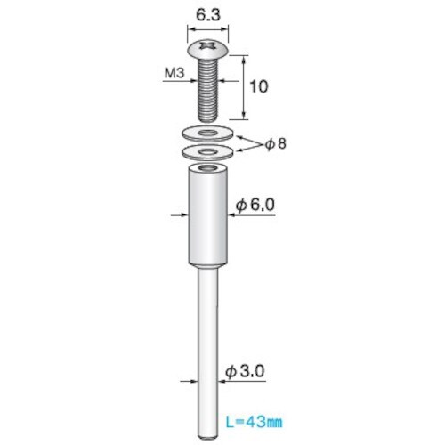 MR153 [アルゴファイル ステンレスマンドレールM3タイプねじ頭 Φ6.3X10L Φ3.0軸]