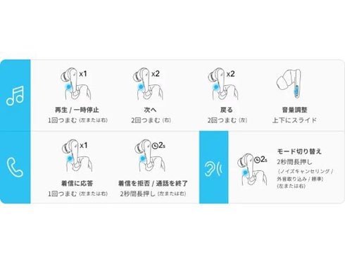 ※ タッチバーでコントロール可能な機能はSoundcoreアプリにてカスタマイズできます。