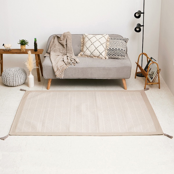 さらっとした踏み心地とインド綿ならではの素朴な仕上がりが魅力のラグ。四隅に付いたフサ(タッセル)でおしゃれ度アップ!吸湿発乾性が良く年中使えるタッチ感もインド綿の人気の秘密です。お客様のご要望に応えて、すべり止め付きを開発しました!