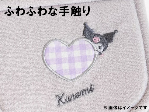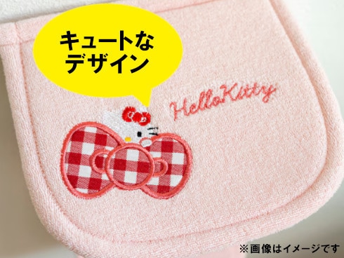 大きくレイアウトされたキティちゃんがキュートなデザイン。手ざわりがふわふわで、また見た目にもふわっとした素材を使用。