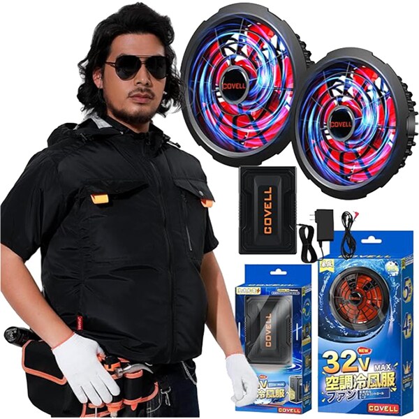 コベル COVELL 空調冷風服フルセット(フード付フルハーネス対応ブラック Sサイズ 半袖+32Vバッテリー&ファンセット) 2025年モデル G2-black-S32 の 商品概要
