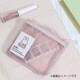 サテンリボンの引き手付きのポーチで、裏側にティッシュケースが付いています。ハンカチや小物を入れて持ち運びに便利です。