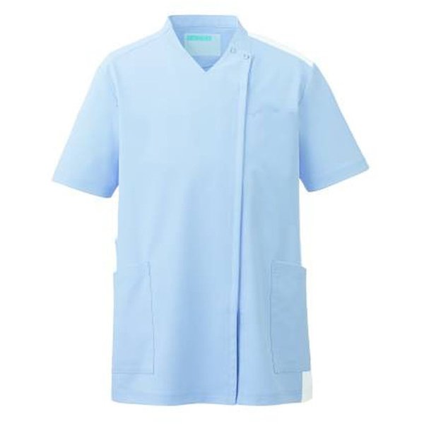 スクラブジャケット 半袖(男女兼用) S サックス×ホワイト 766-41