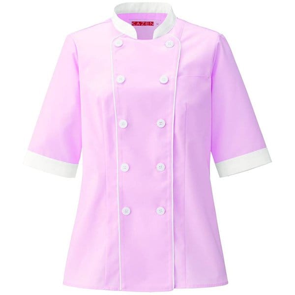 カゼン KAZEN レディスコックシャツ S ラズベリー×ホワイト 691-73 の 商品概要
